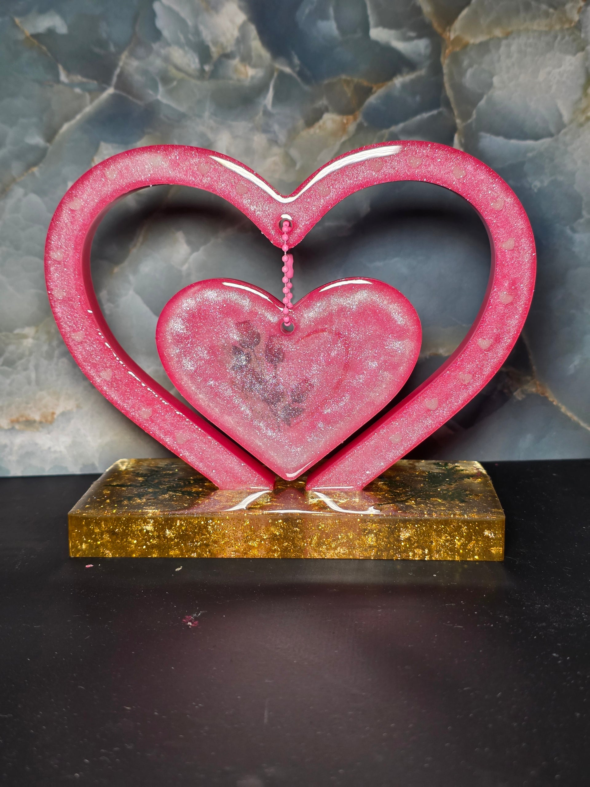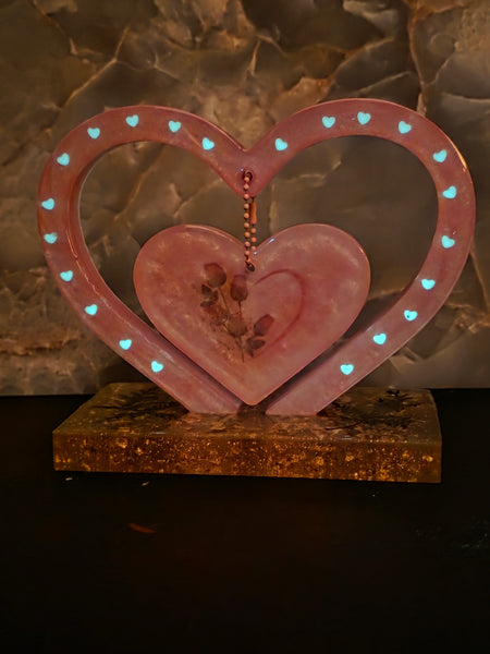 Glow-in-the-Dark Heart Photo Frame - Handmade Resin Valentine's Day Decor