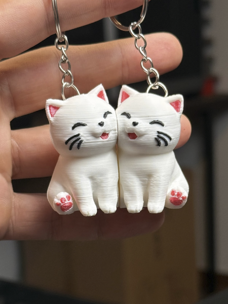 These adorable 3D-printed cat love keychains are purr-fect for cat lovers! Featuring two cute white cats sitting together with sweet expressions and pink details, this charming keychain set is perfect for couples, best friends, or anyone who loves cats.